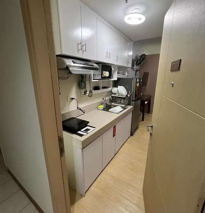 Xny At Smdc Trees Residences Quezon City-1 Bed W Balc内の台所で、お好みの食事を快適に調理できます。 宿泊施設から歩いてわずか10分ほどのLagroバス停からバスに乗って、マニラ市の他の地域を探索することもできます。